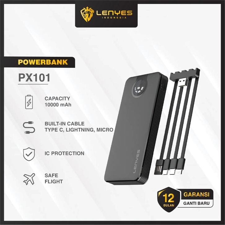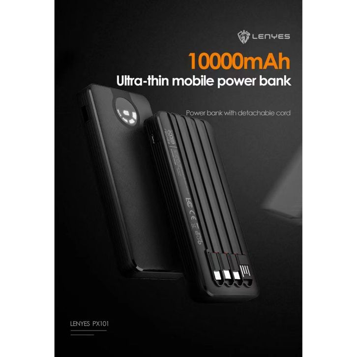powerbank fast charging LENYES PX101 Powerbank 10000mAh Mini Slim Portable With 3 Kabel Output Lightning Type C Micro P