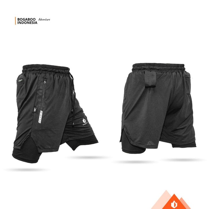 BOGABOO Running Pants Seri ARON-RUN - Double Celana Dan Lagging Pendek - Celana Olahraga Gym Fitness Sport Running Hiki