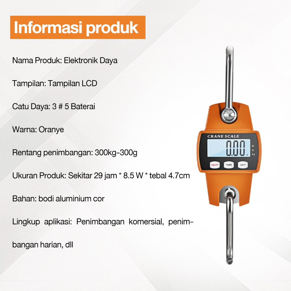 Timbangan Gantung Digital 300Kg / Timbangan Gantung Digital / 660LBS ORI Crane Scale Digital LED Orange LCD Smart Hook Scale