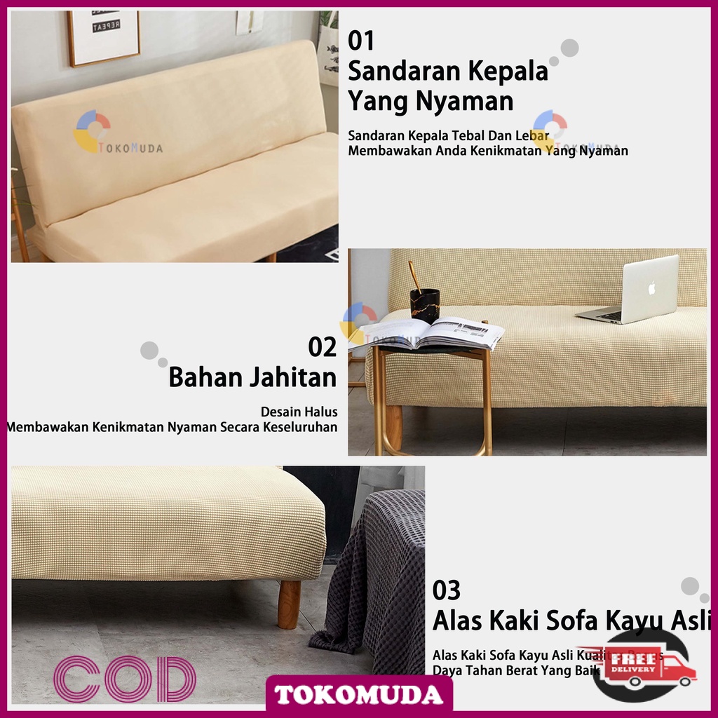 TOKOMUDA Cover Sofa Bed Polos Sarung Sofa Bed Tebal elastis Tahan Kotoran