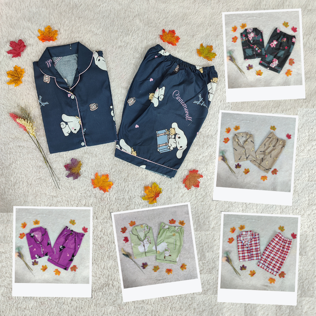 BAJU TIDUR / PIYAMA WANITA DEWASA, LENGAN PENDEK & CELANA PENDEK (HOTPANTS), LD 104 CM