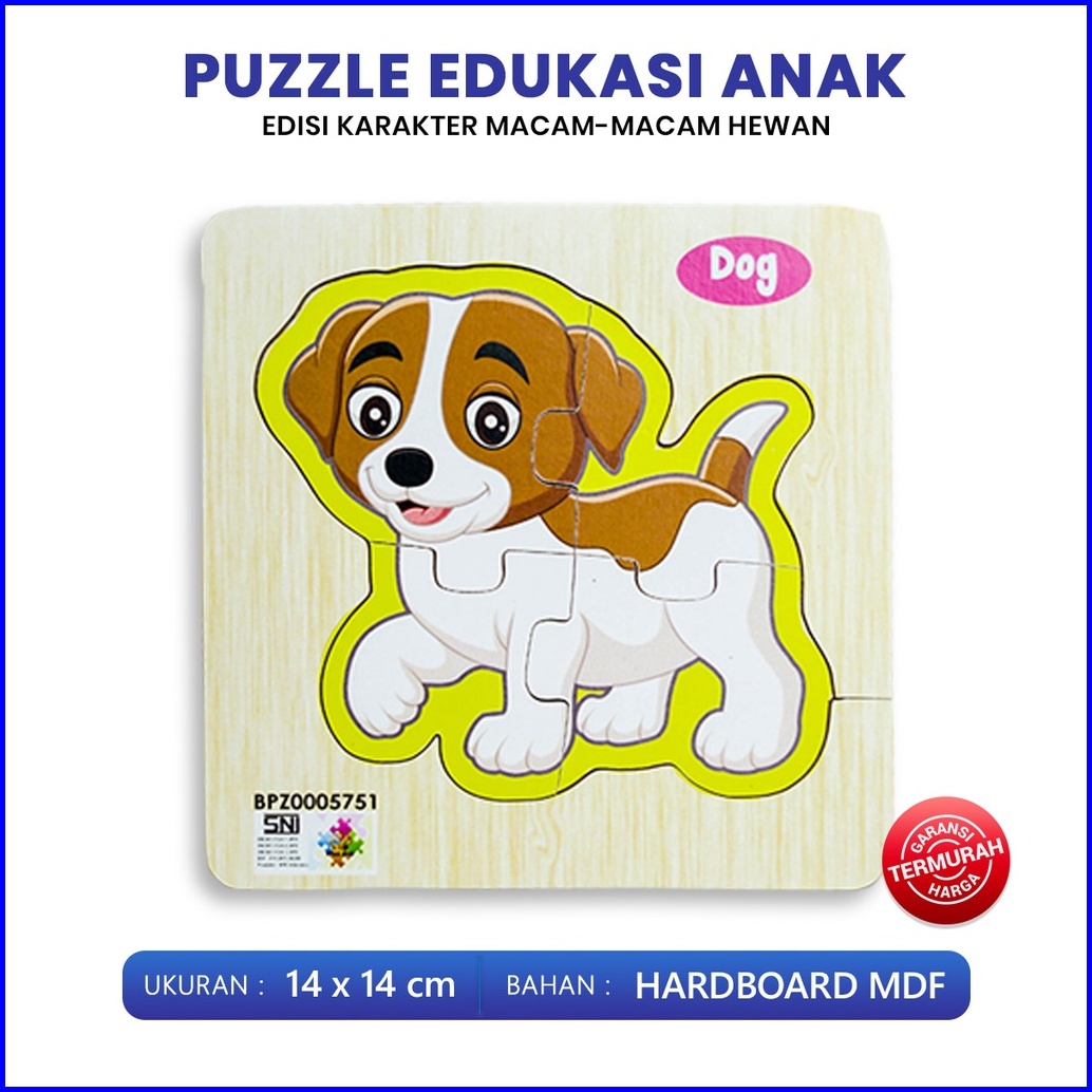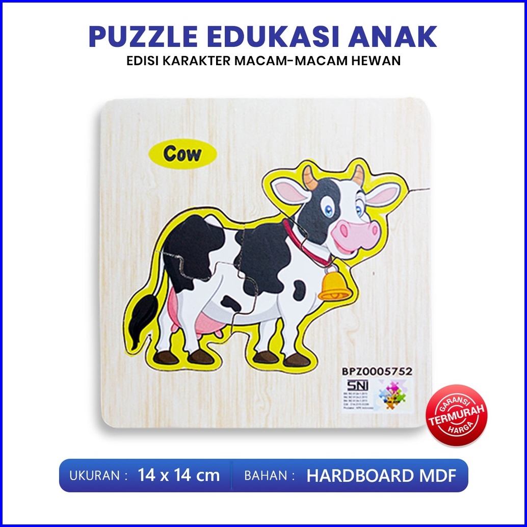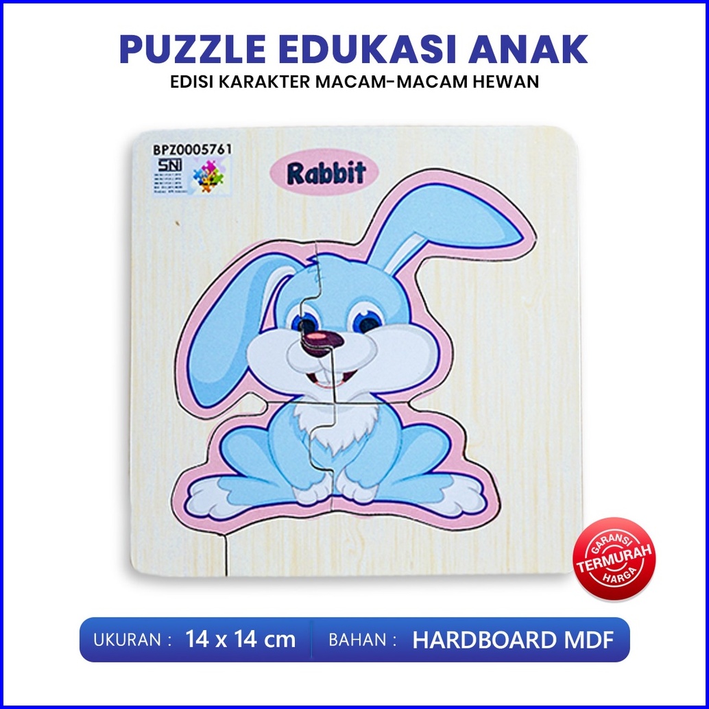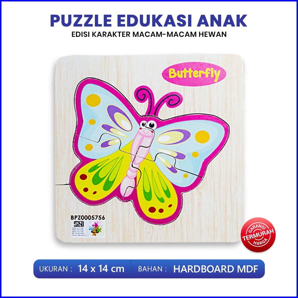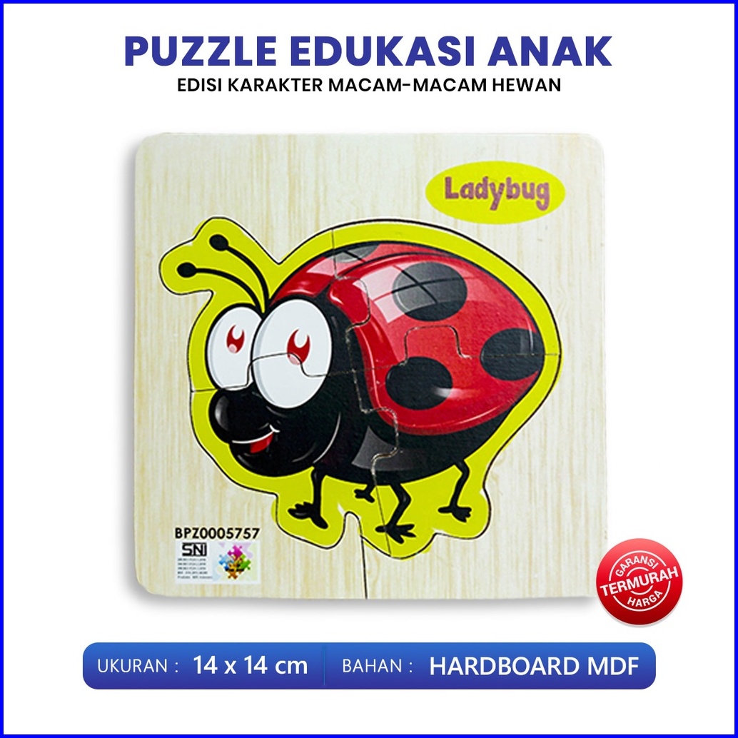 Puzzle Edukasi Anak Puzzle Kayu Puzzle Anak Seri Hewan Dog Ladybug Duck Butterfly Cow Rabbit Ukuran 14 Bahan Mdf King Pu
