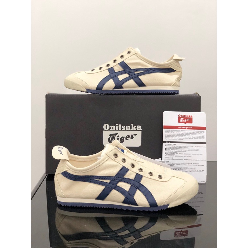 Sepatu 0nitsuka Tiger Slip On Cream Navy sepatu snekars original vietnam distro onitsuka premium quality BNIB