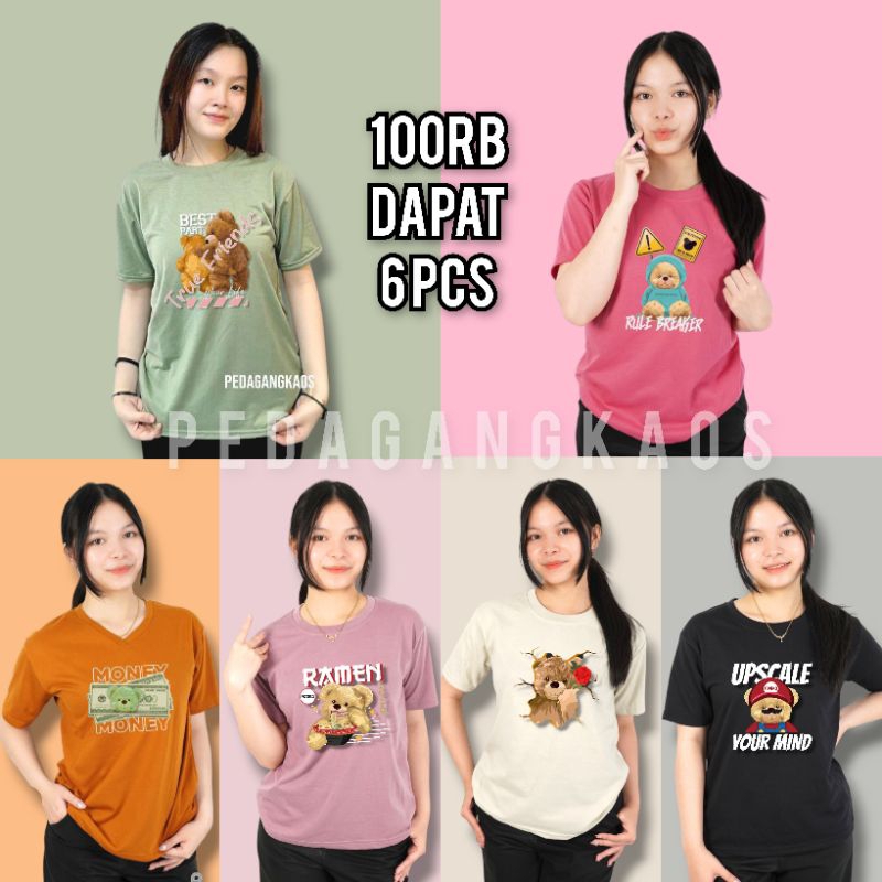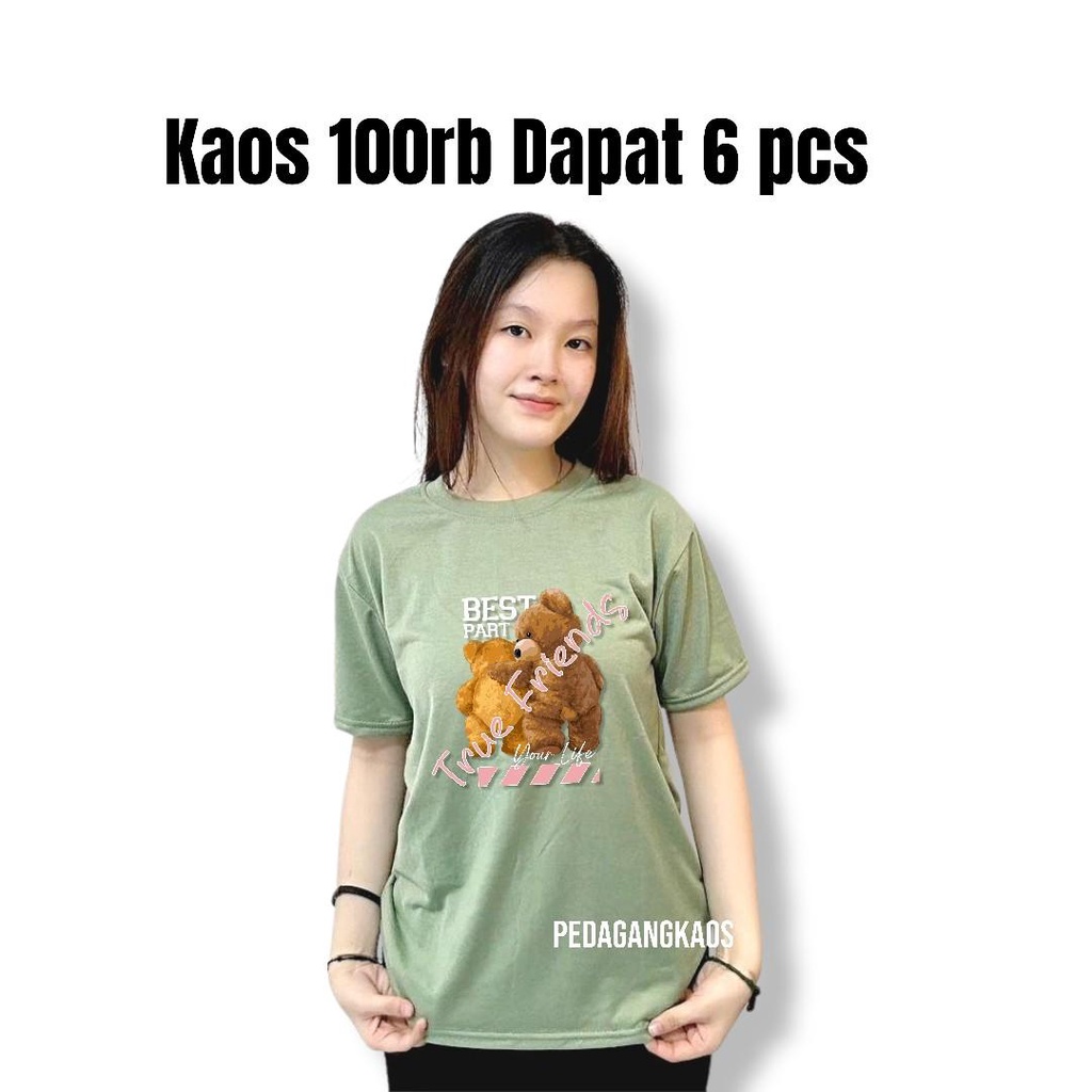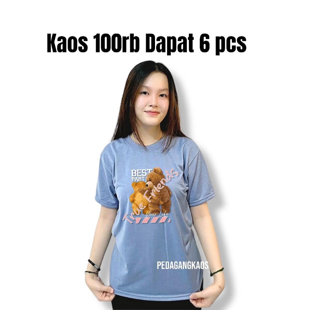 100rb Dapat 6 Pcs Kaos Wanita Motif True Friends Lengan Pendek Bahan Babyterry Slim-fitting Cocok Untuk Santai