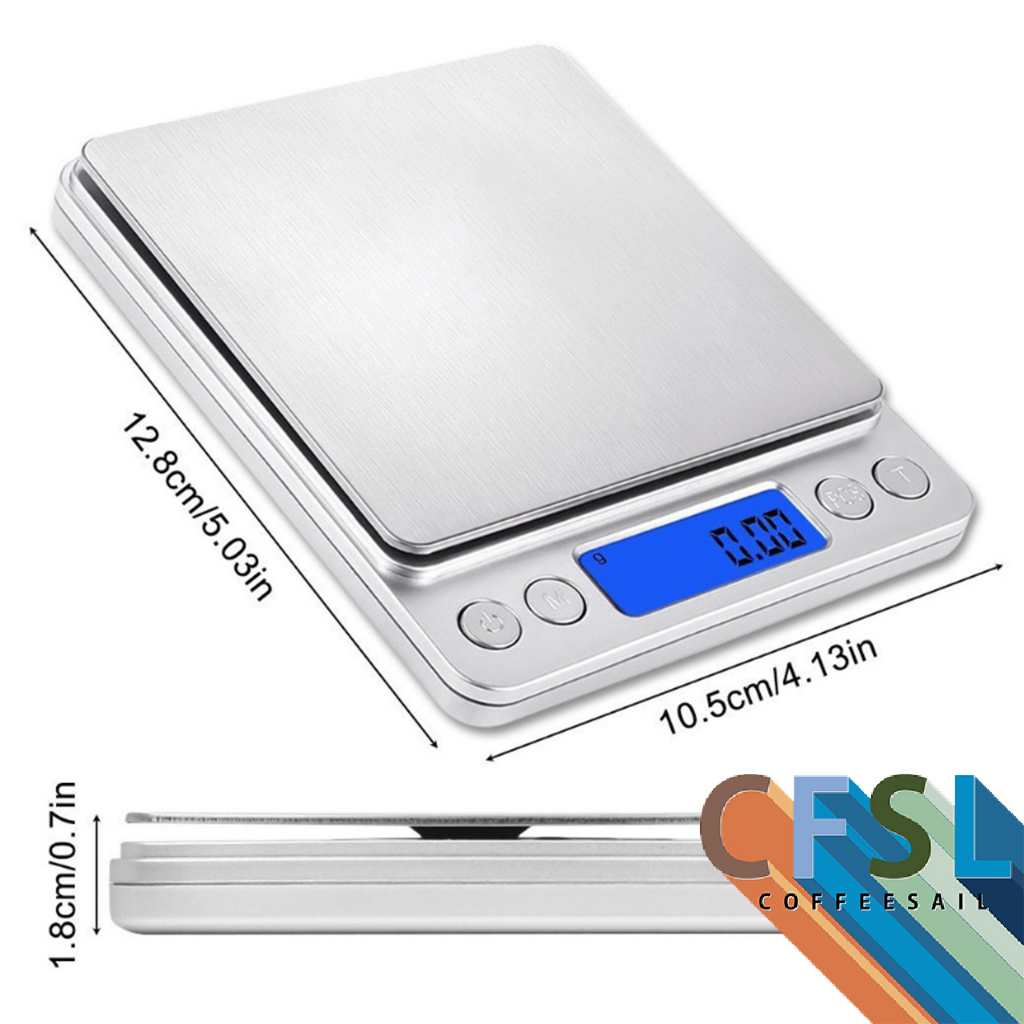 TIMBANGAN DIGITAL KETELITIAN 0,1Gram DENGAN TATAKAN AKRILIK TIMBANGAN DAPUR KOPI KUE SCALE 1/2/3 Kg 0.1g SILVER