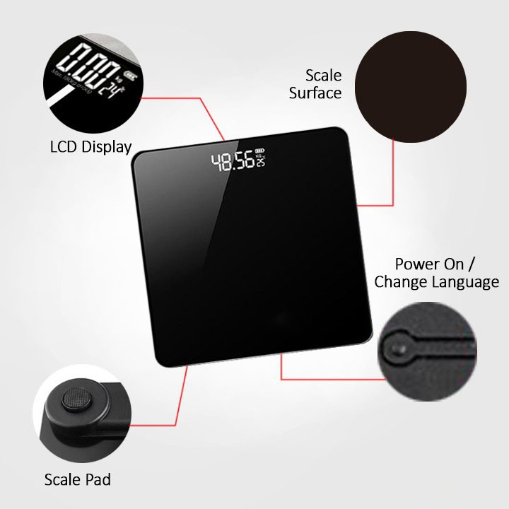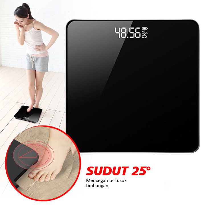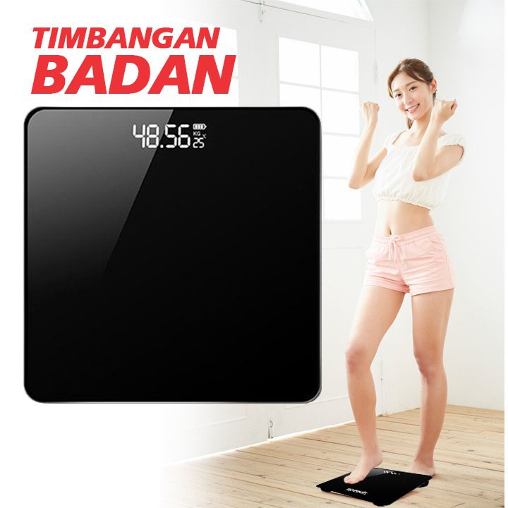 QME Timbangan Badan Digital 180 KG Anti Pecah Layar LCD 26X26cm (sudah termasuk baterai)