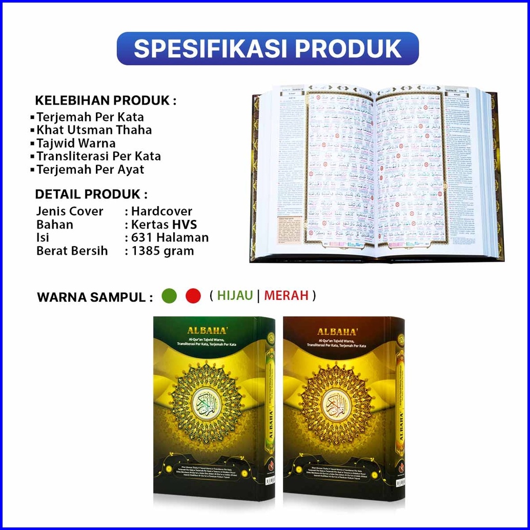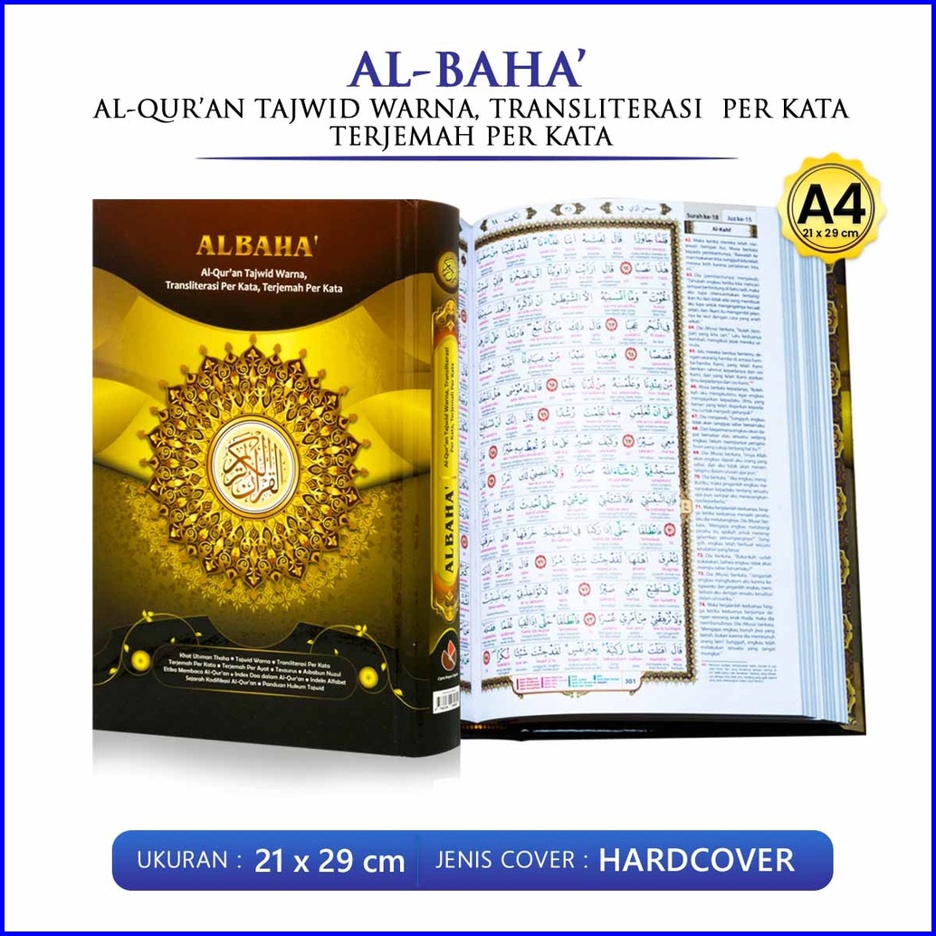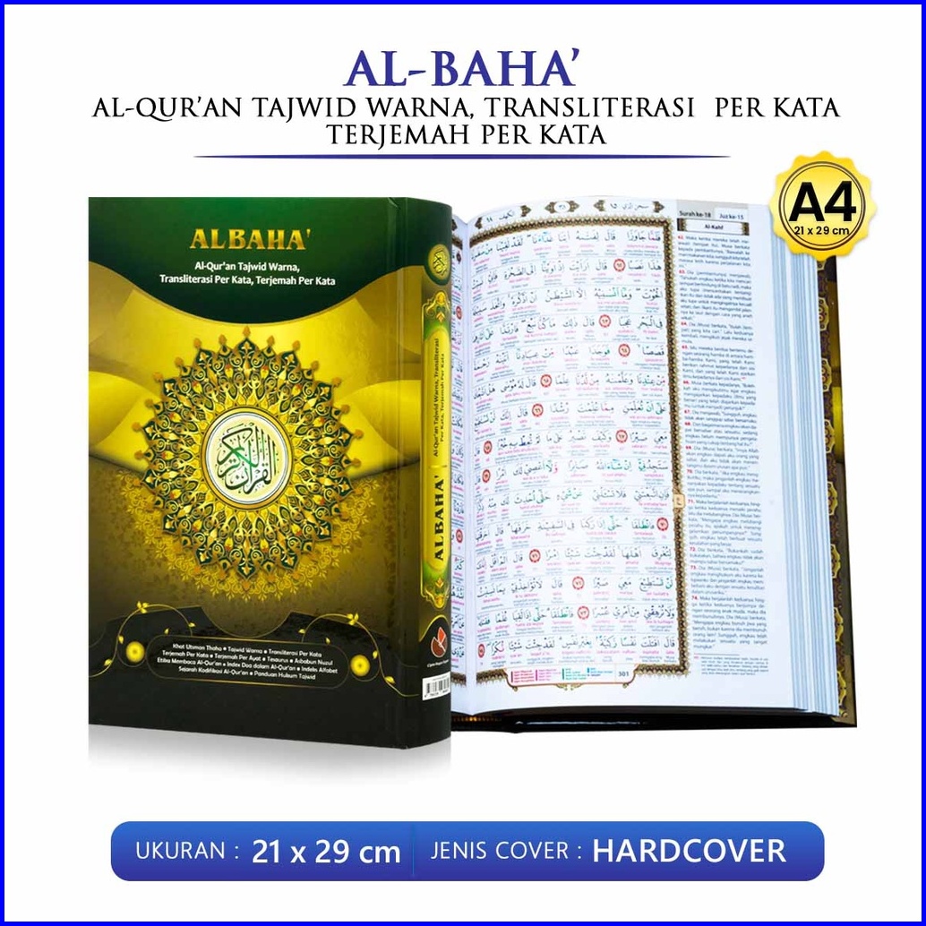 Al Quran Besar A4 21 X 29 Al Baha Alquran Tajwid Warna Transliterasi Per Kata Dan Terjemah Perkata Cipta Bagus Segara -