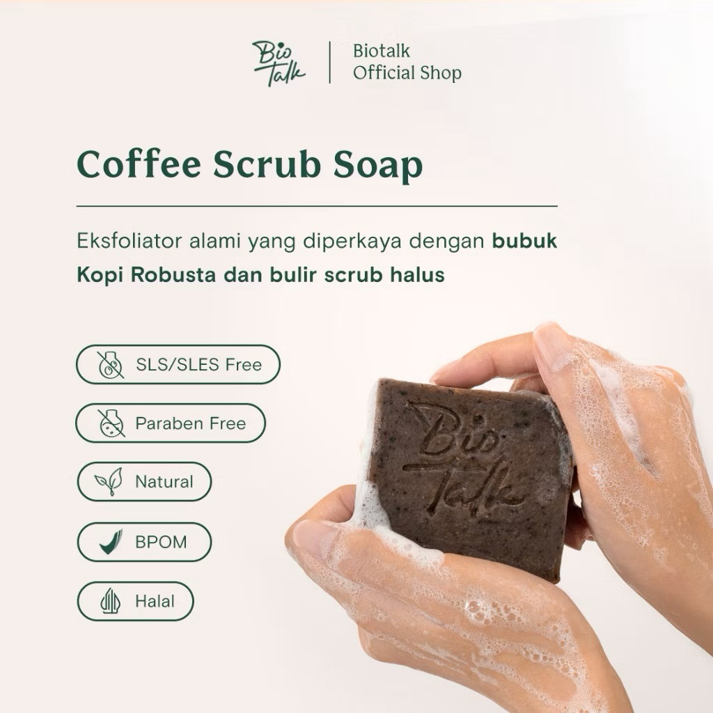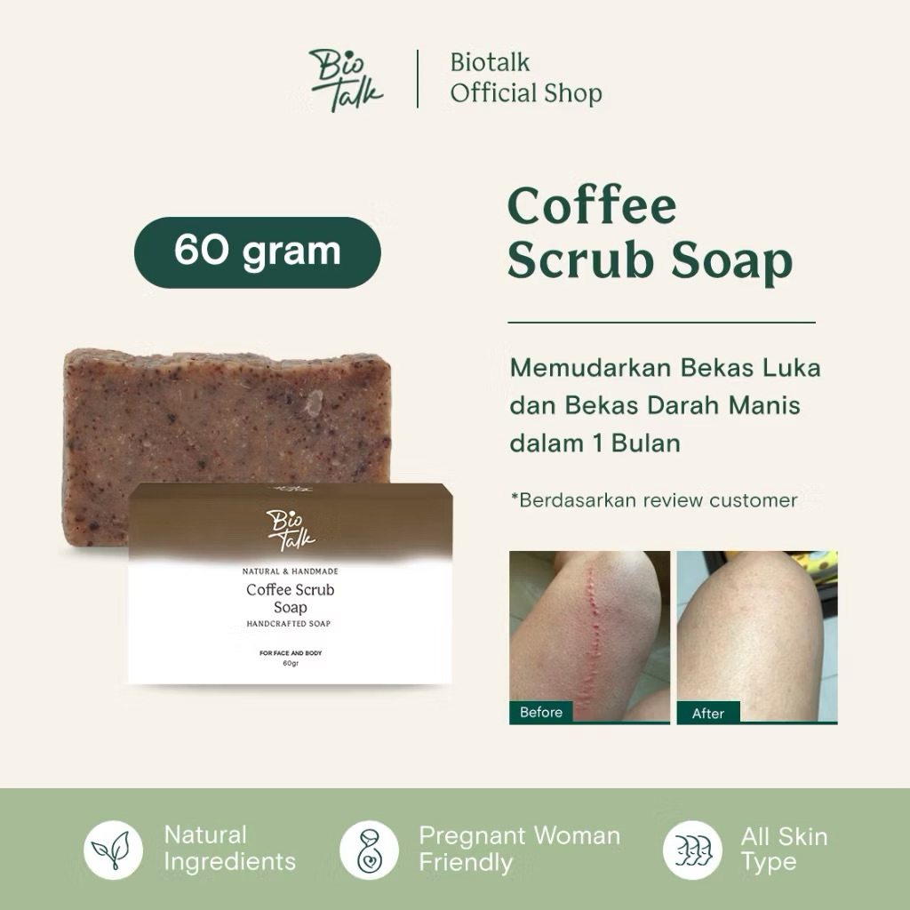 Biotalk Coffee Scrub Soap 120gr 60gr no SLS/SLES Sabun Mandi Kopi Natural Handmade travel size untuk bekas luka stretchm