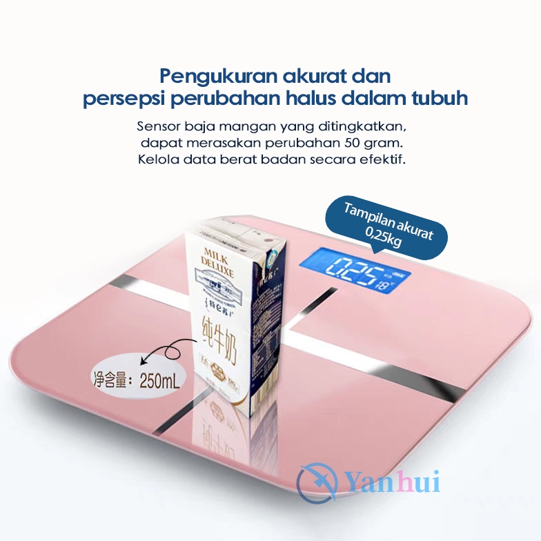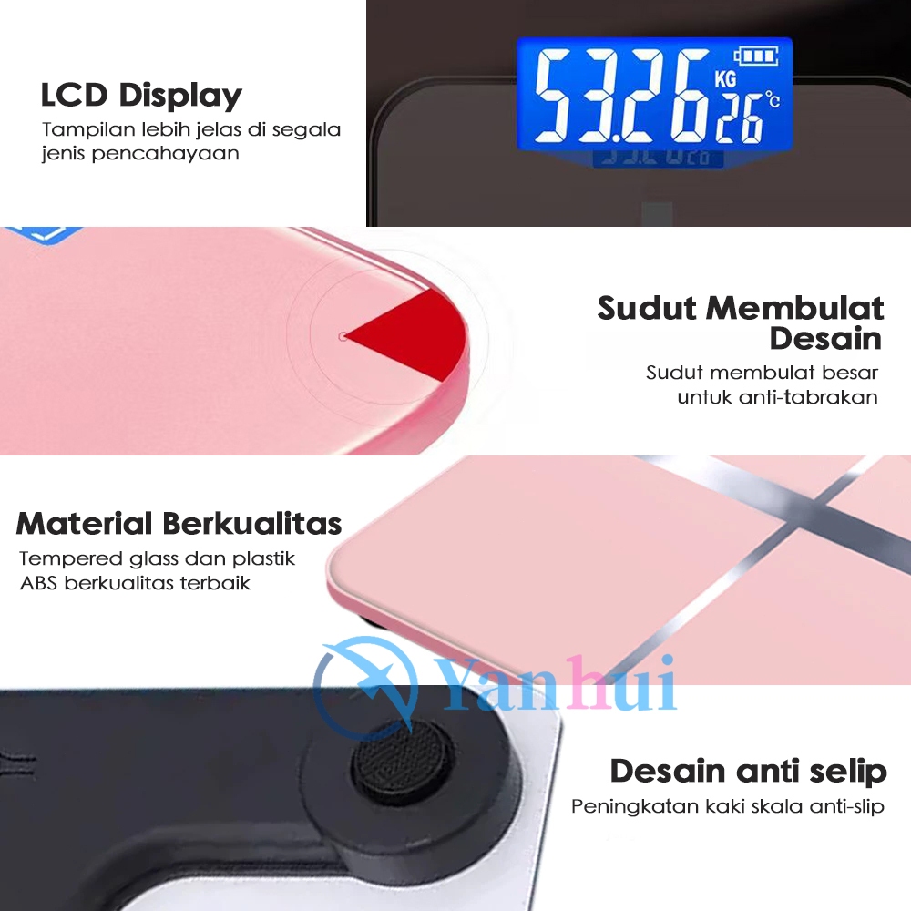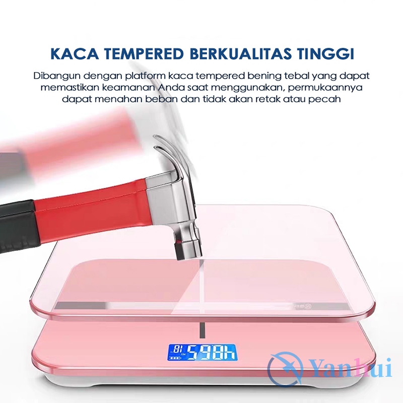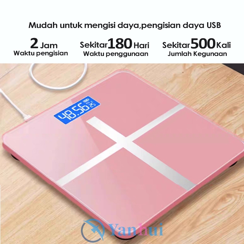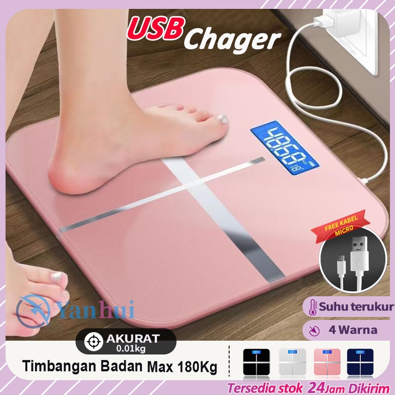 Timbangan Badan Digital USB Charge 180 KG Anti Pecah Layar LCD Pengukuran Akurat Body Weight Scale