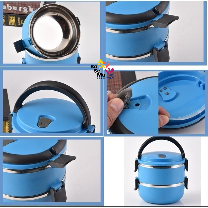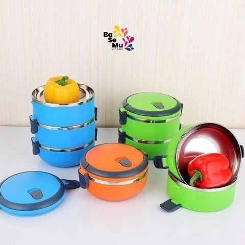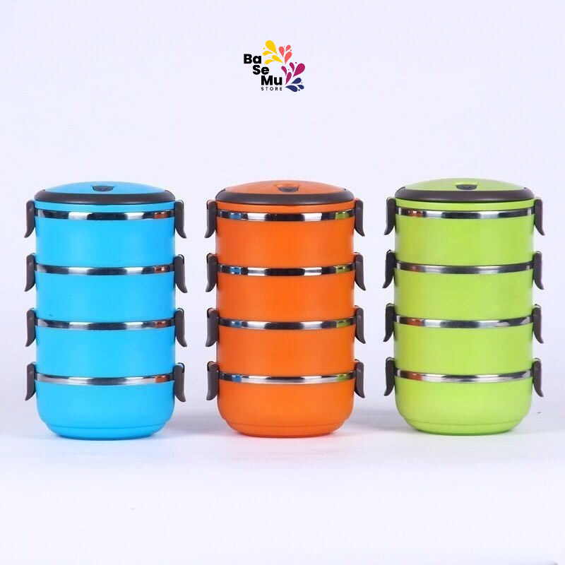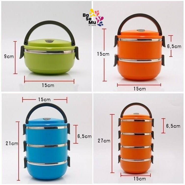 Rantang Susun Stainless Steel Bulat Lunch Box Warna Warni Polos