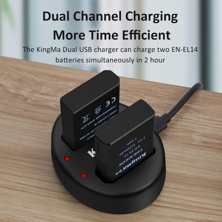 KINGMA Battery Nikon EN-EL14 2-Pack with Dual Charger - Non Lcd Display