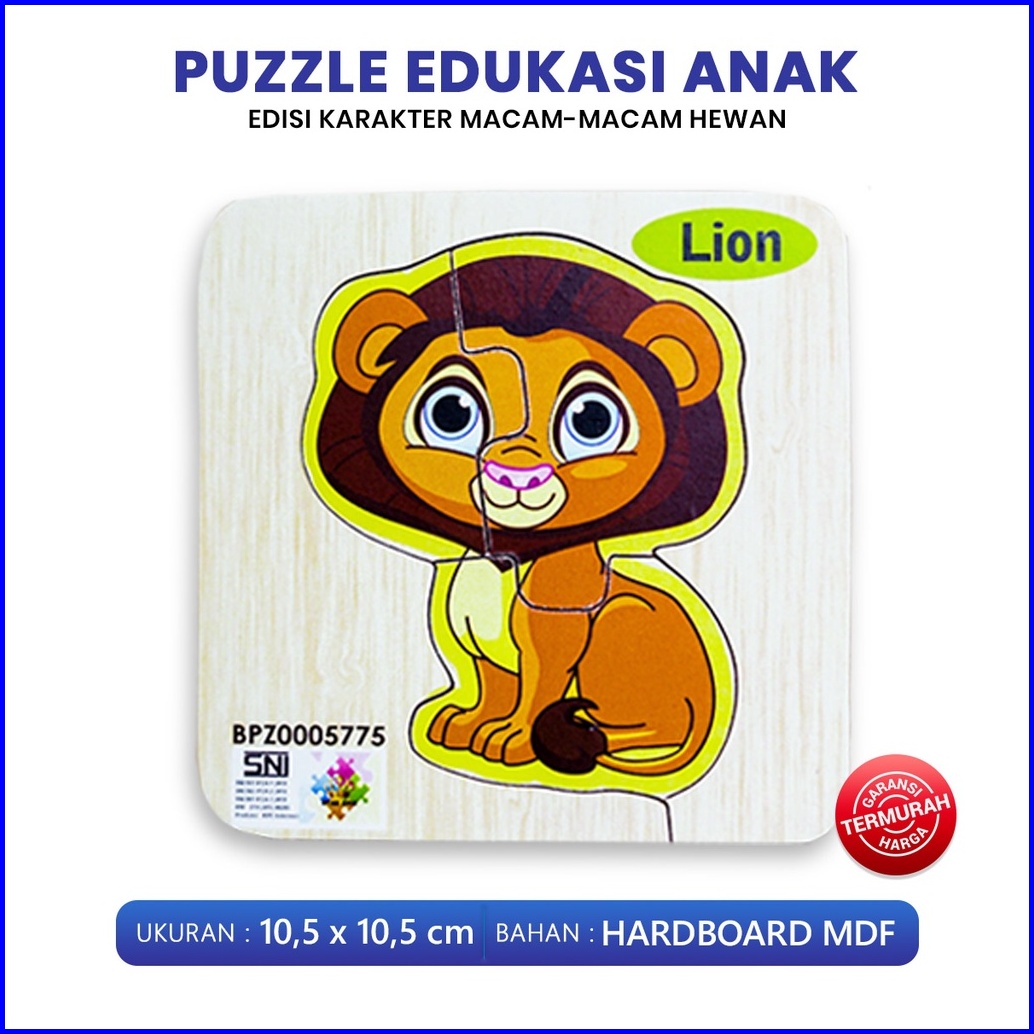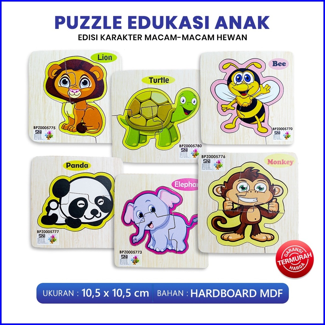 Puzzle Edukasi Anak Puzzle Kayu Puzzle Anak Seri Hewan Lion Turtle Bee Panda Elephant Monkey Ukuran 10 Bahan Mdf King Pu