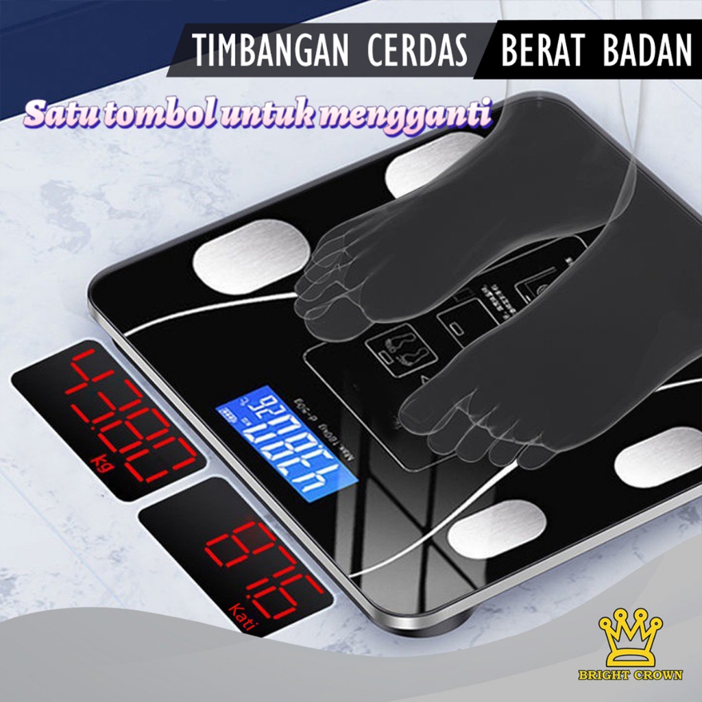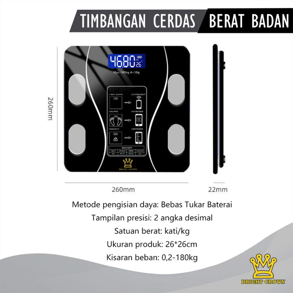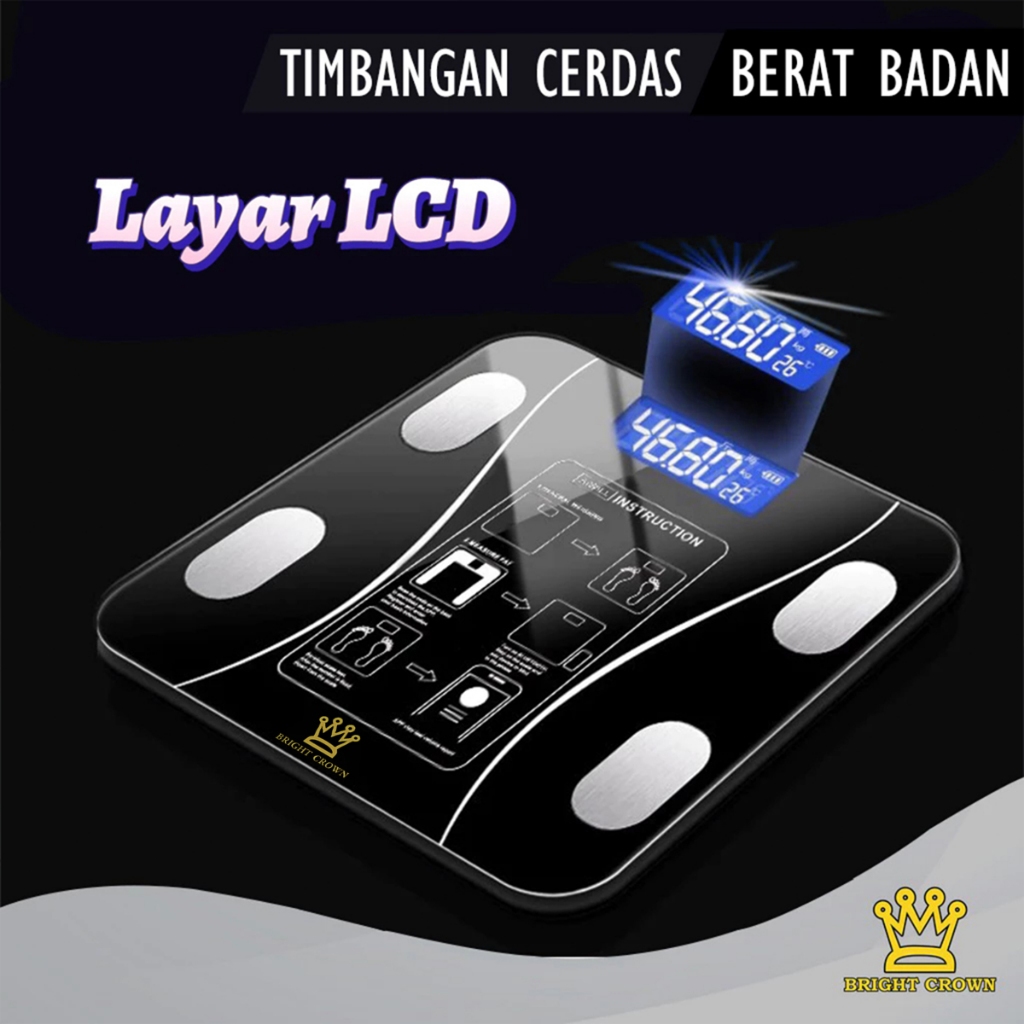 Bright Crown Timbangan Badan Digital Bluetooth 180KG Layar LCD / Smart Body Fat Scale Tempered Glass