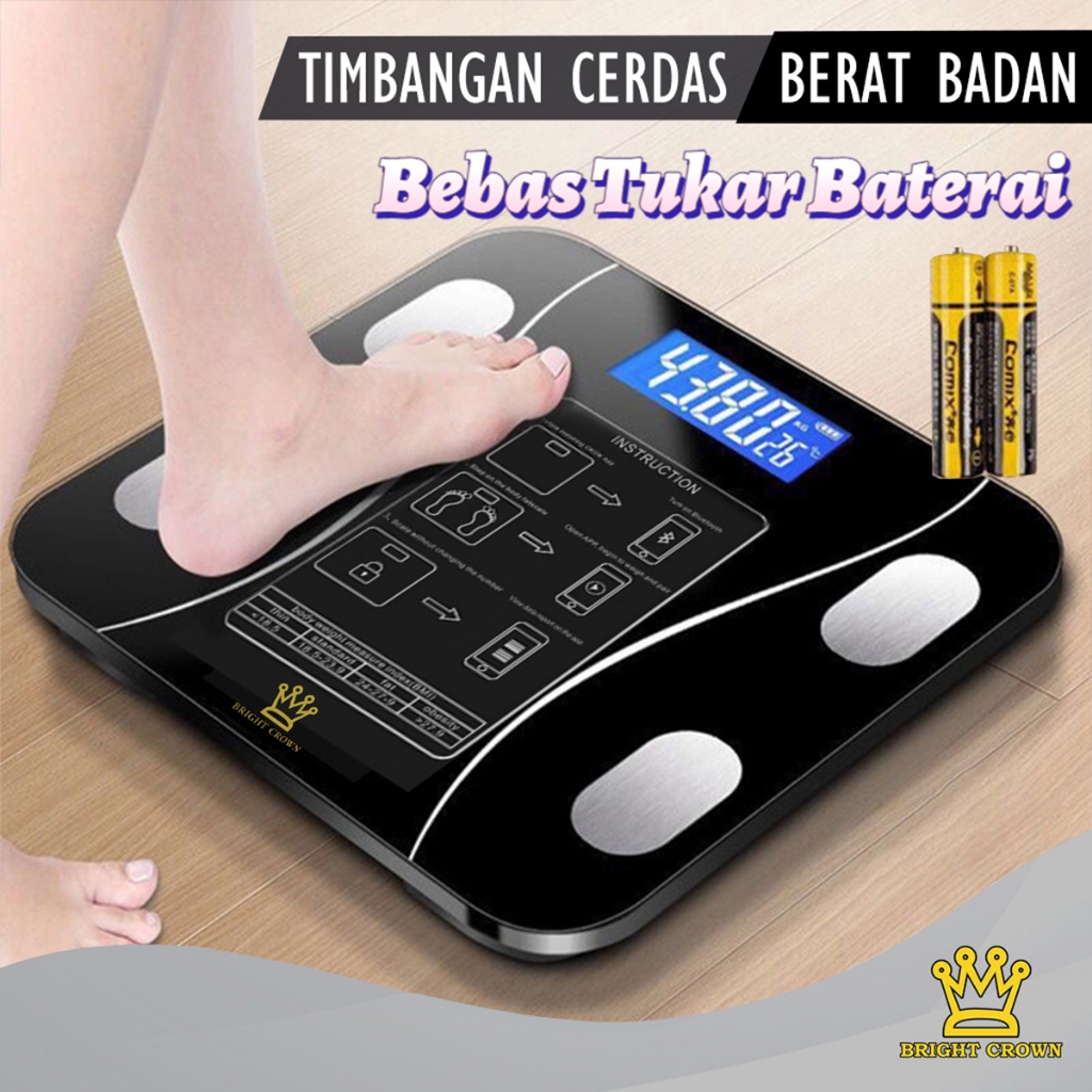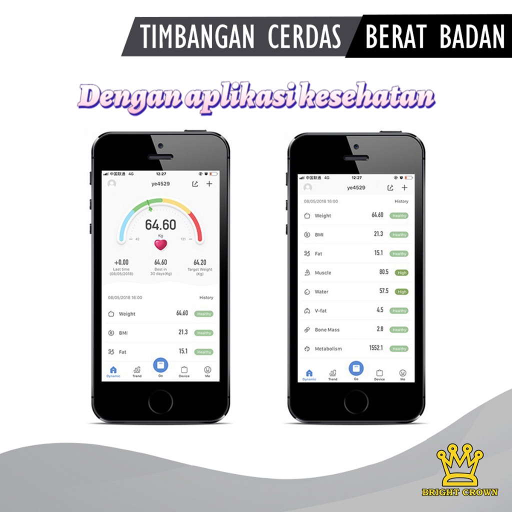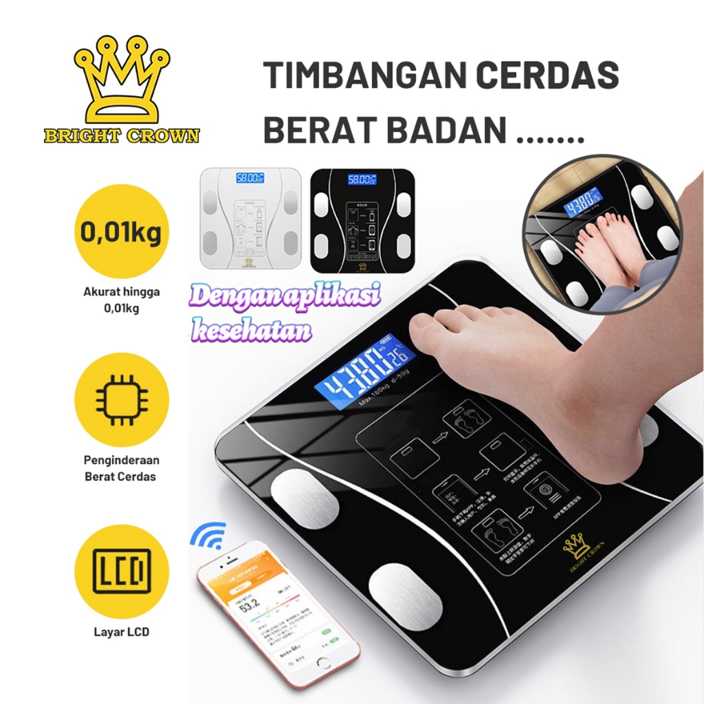 Bright Crown Timbangan Badan Digital Bluetooth 180KG Layar LCD / Smart Body Fat Scale Tempered Glass