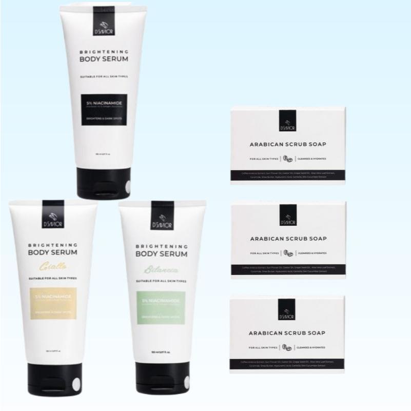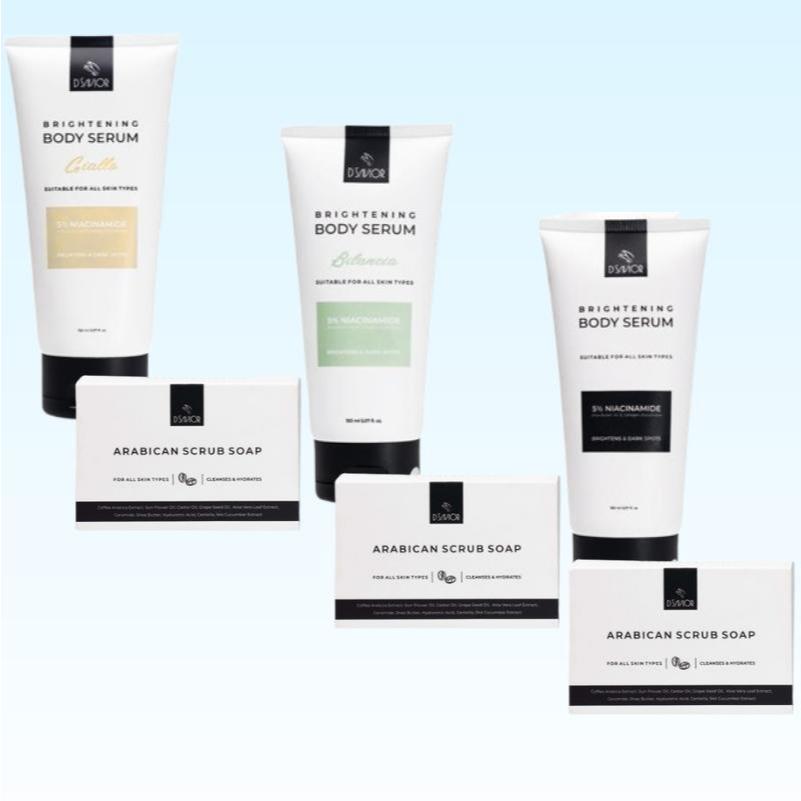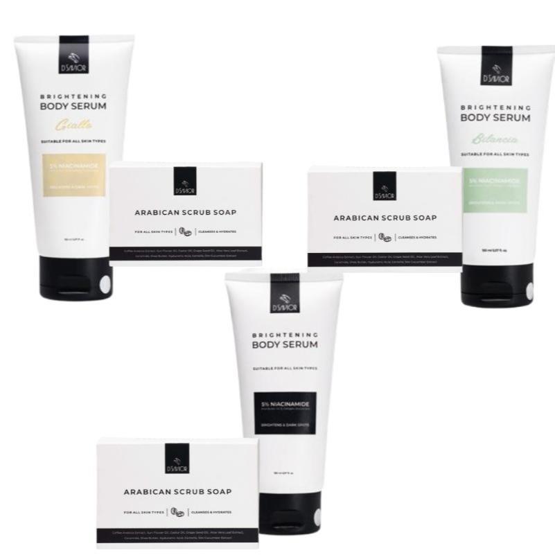 D'SAVIOR PAKET HEMAT BODY SERUM 150ML + SABUN ARABICAN SCRUB SOAP 80gr - Dsavior Bundling paket hemat - Memudarkan beka