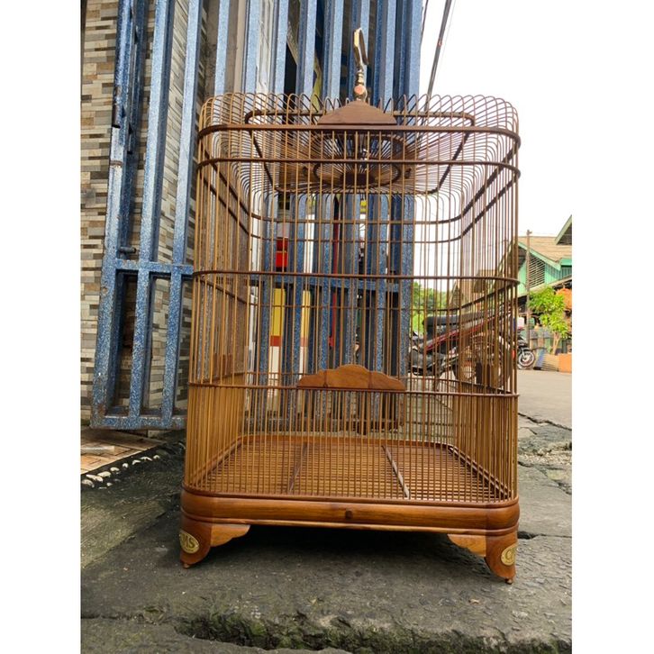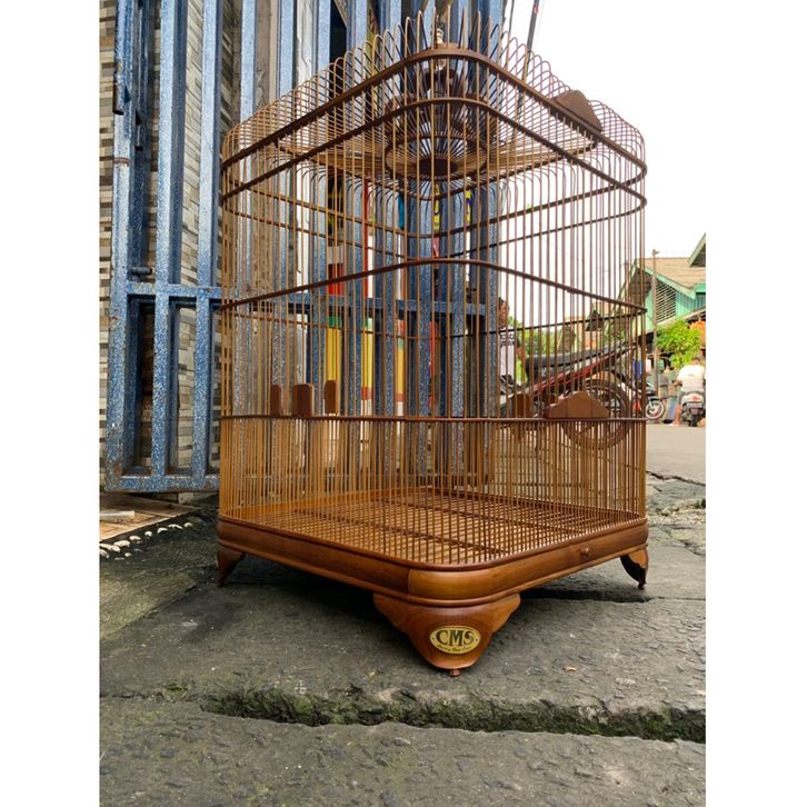 SANGKAR BURUNG MURAI OVAL JUMBO JATI CMS KANDANG INCLUDING TANGKRINGAN AMPLAS JATI ORIGINAL