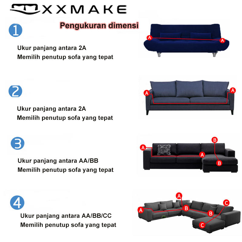 XXMake Cover Sofa Kenyamanan Tidak Licin Penutup Sofa 90140cm 145185cm 190230cm 235300cm Cocok Untuk Berbagai Jenis Sofa -3