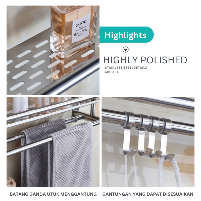 Olla Hom Rak Kamar Mandi Dinding Rak Bumbu Dapur Stainls Steel