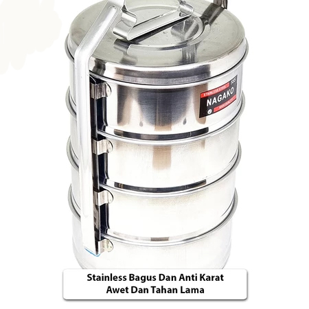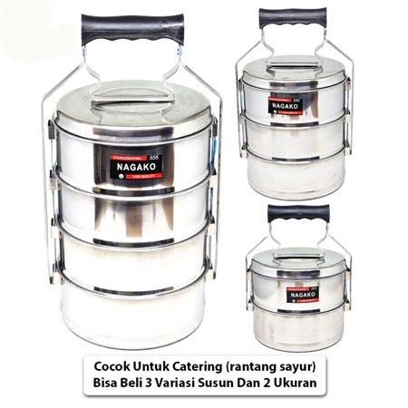 Rantang 3 / 4 Susun Stainlees Ukuran 14cm / Rantang 3 & 4 Lapis Makanan Sayuran Catering Bekal Nagako Subron Tudung Saji