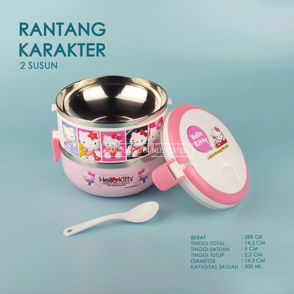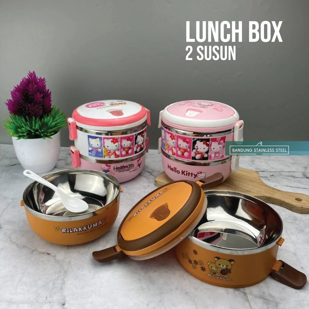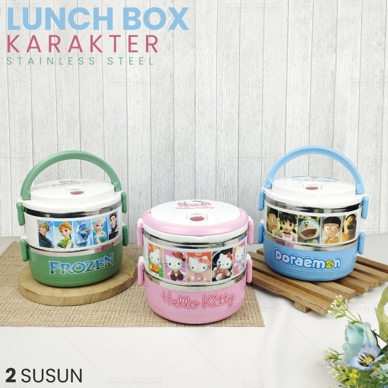 LAUNCH BOX RANTANG 2 SUSUN STAINLESS STEEL KARAKTER KAPASITAS 1.4 LITER MOTIF WARNA RANDOM