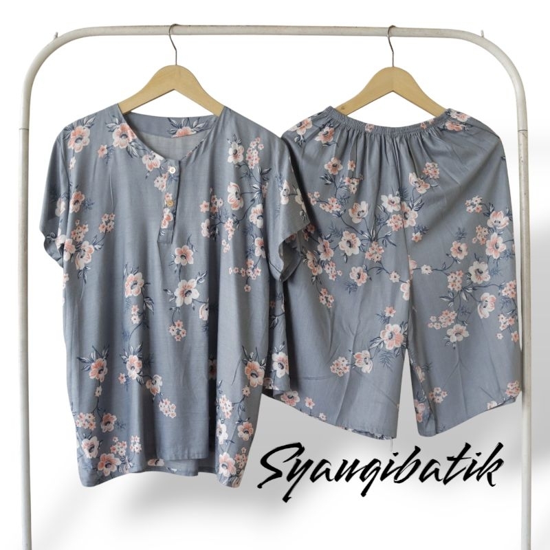 Setelan Baju Tidur Piyama Celana Pendek Motif Bunga Bahan Rayon