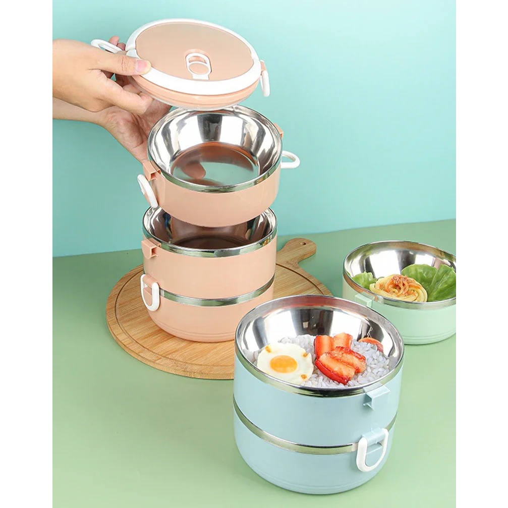 Rantang 3 Susun Stainless Double Wall Anti Tumpah Tahan Suhu BPA Free Lunch Box Besar