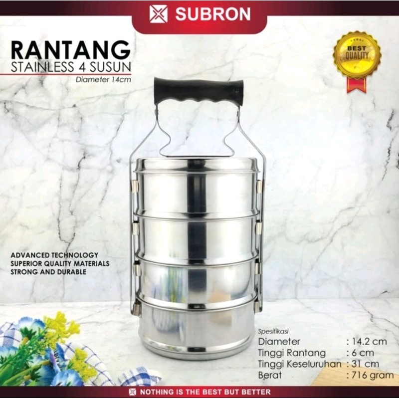 Rantang Susun Stainless Steel SUBRON 14cm Susun 2,3 & 4 Premium Quality