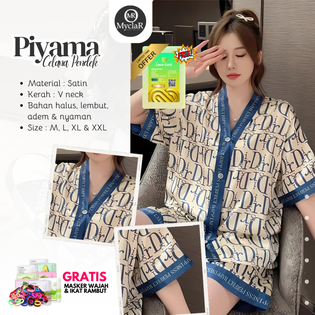 Satu Set Baju Tidur Premium Piyama Pajamas Wanita Impor Motif Celana Pendek One set Setelan Myclar