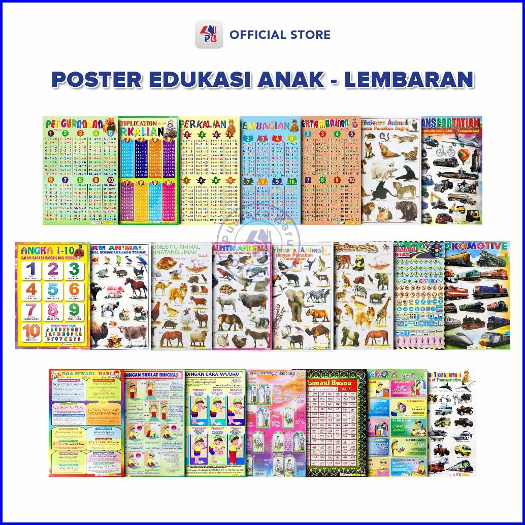 Poster Edukasi Anak Mainan Edukasi Anak Lembaran Animal Domestic Pengurangan Perkalian Aneka Transportasi Bacaan Shalat
