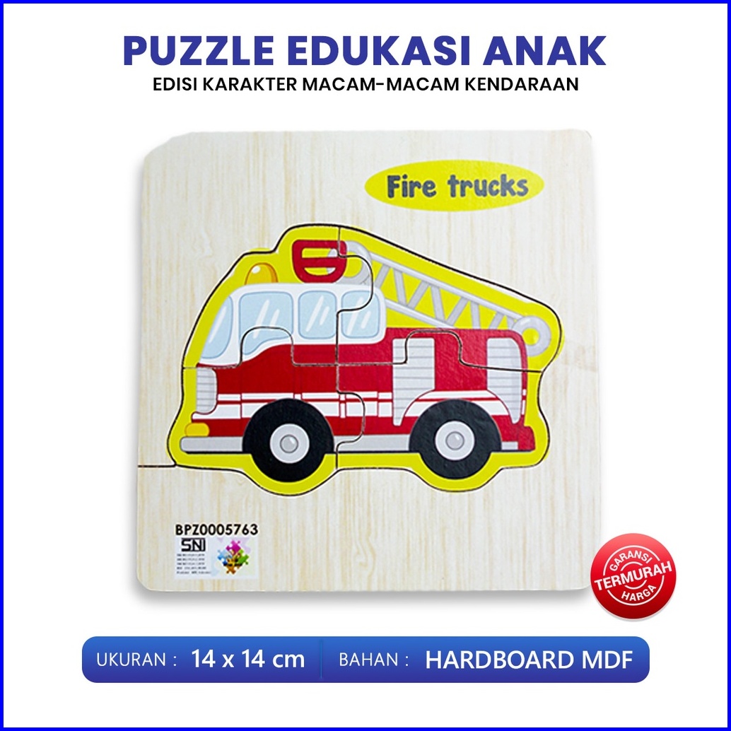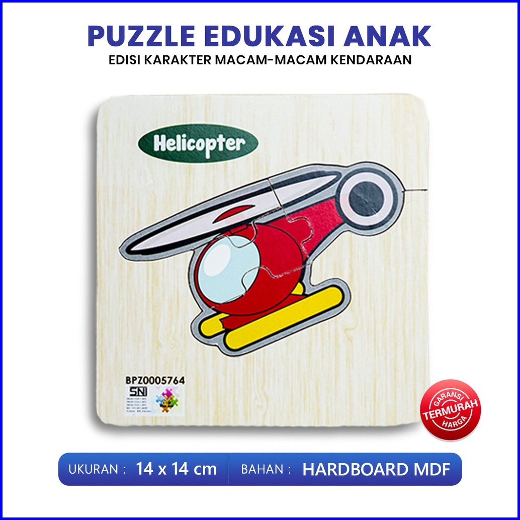Puzzle Edukasi Anak Puzzle Kayu Puzzle Anak Seri Kendaraan Helicopter Rocket Ship Train Truck Fire Truck Ukuran 14 Bahan