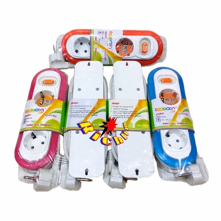 Promo DEXICON Stop 4 Lubang 3 Meter Colokan Listrik Kabel Tembaga Asli SNI New