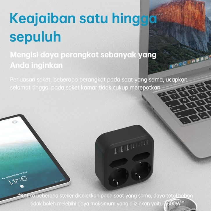 Promo KIVEE Stop colokan listrik 10 in 1 USB*3+Colokan lubang*4 + Type C*4 1 tahun New