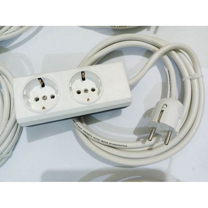 Promo Stop Broco 1-6 lubang+kabel KAWAT SNI 2 x 1.5 /1-10 meter/Steker Arde Kuningan New