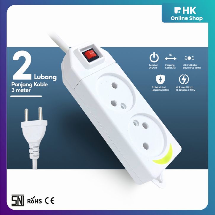 Promo HK-Stop Kabel 2 3 4 5 Lubang Colokan / Stop Gepeng + Kabel Putih and Krem New