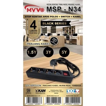 Promo MYVO Stop Kabel MSP HITAM 2,3,4,5 Lubang 1.5 ,3 ,5 Meter Kuningan SNI New