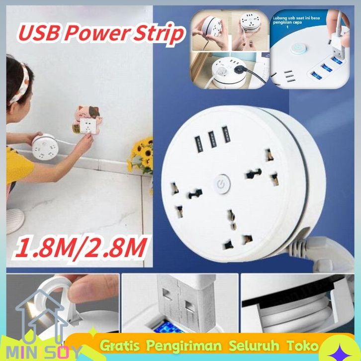 Promo Colokan Listrik USB Smart Power Strip Stop 3 Lubang Saklar+3 Port USB 2.8M New