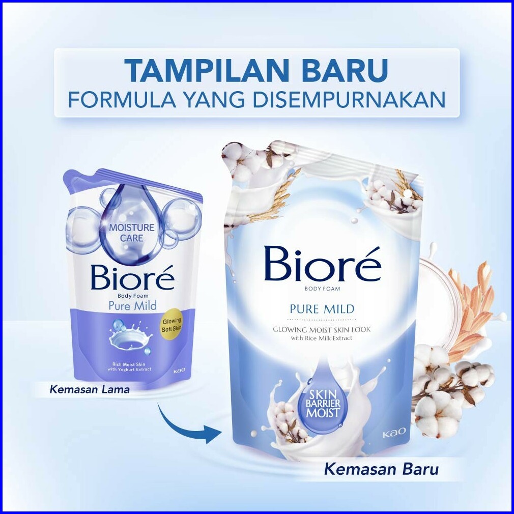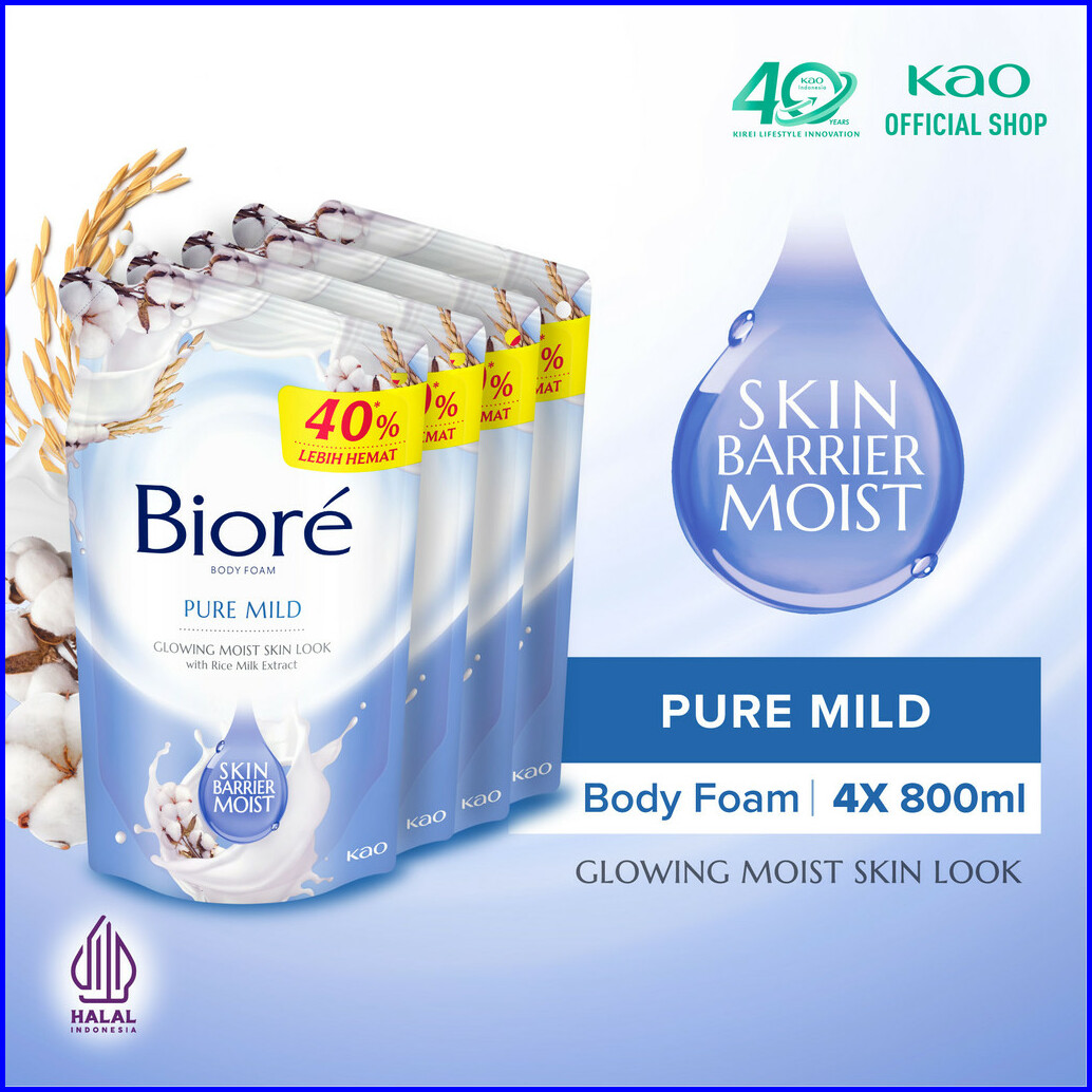 Biore Body Foam Sabun Mandi Cair Pure Mild Pouch 800ml Fourpack