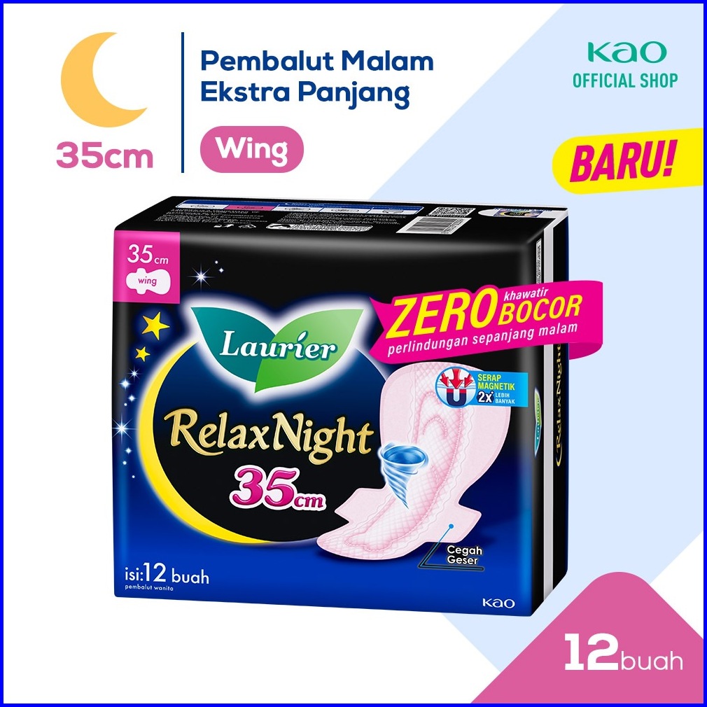 Laurier Relax Night Pembalut Wanita Untuk Bebas Aktivitas Di Hari Deras 35cm Wing Zero Khawatir Bocor Sepanjang Malam Is