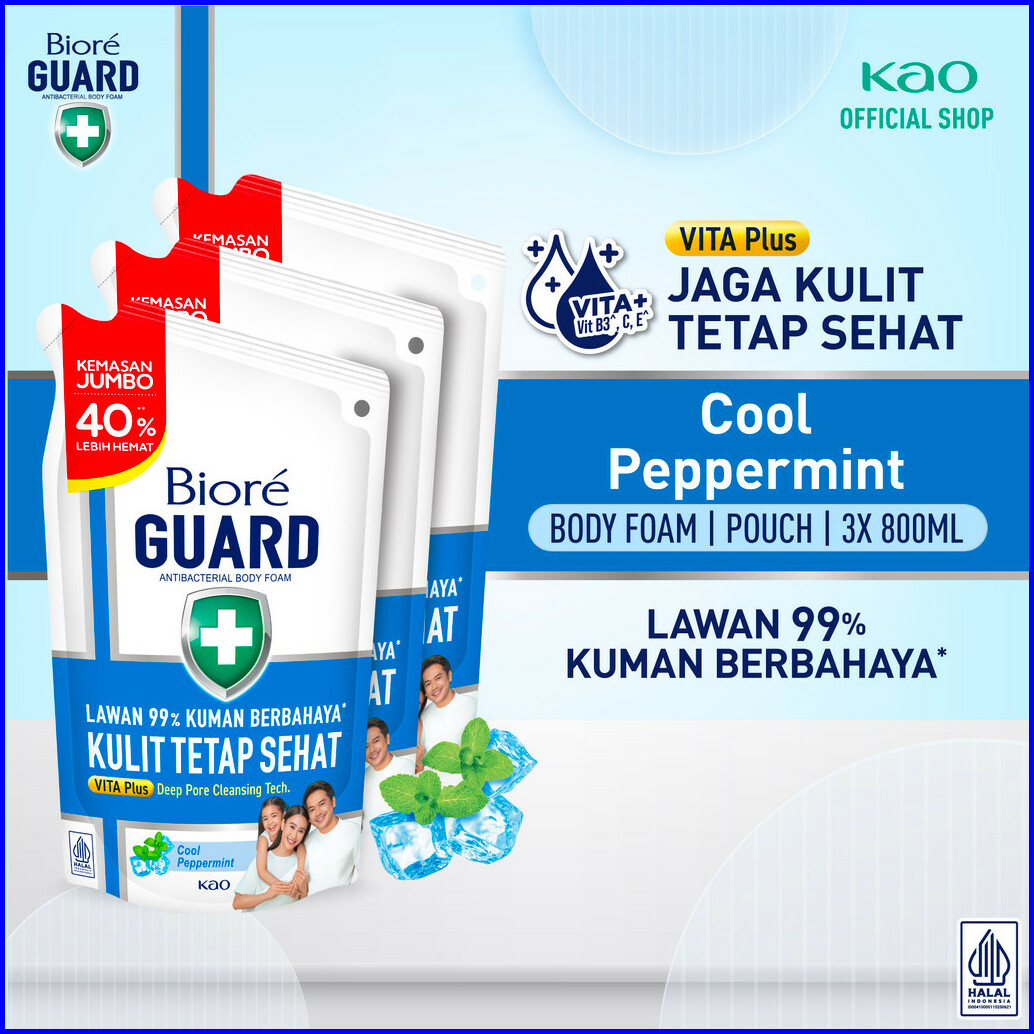 Biore Guard Cool Peppermint 800ml Pouch Triplepack