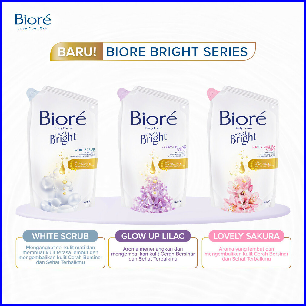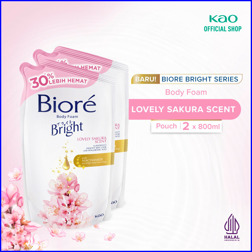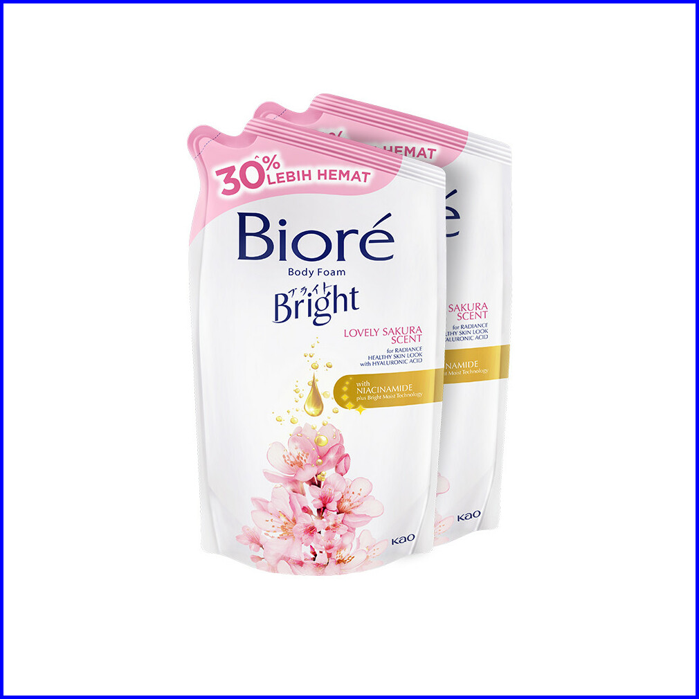 Biore Bright Sabun Mandi Cair Pencerah Kulit Lovely Sakura Hyaluronic Acid Refill 800 Ml Twin Pack - Sabun Cair Body Was