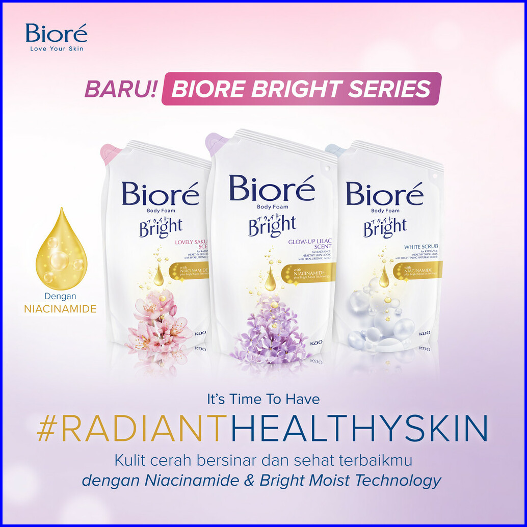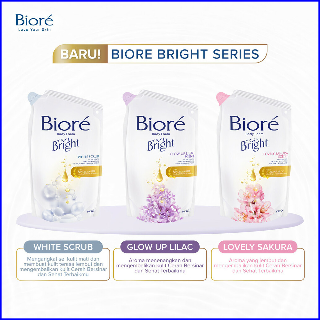 Biore Bright Body Foam Sabun Mandi Cair White Scrub Dengan Niacinamide Vit E 750ml Triple Pack
