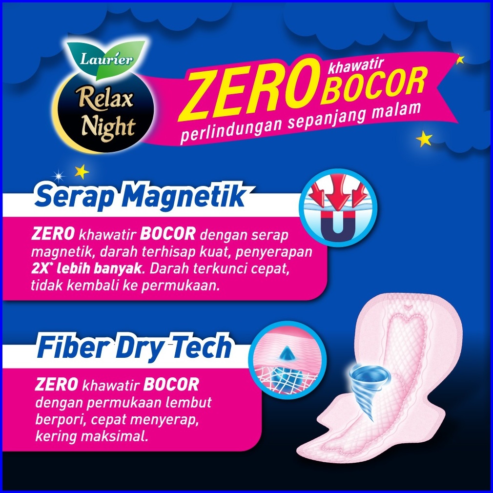 Laurier Relax Night Pembalut Wanita Untuk Bebas Aktivitas Di Hari Deras 30cm Wing Zero Khawatir Bocor Sepanjang Malam Is