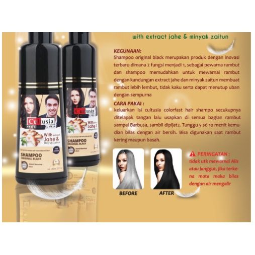 shampo uban Cultusia Coloring Shampoo Original With Ekstrak Jahe & Minyak Zaitun Black / Brown 160 ml