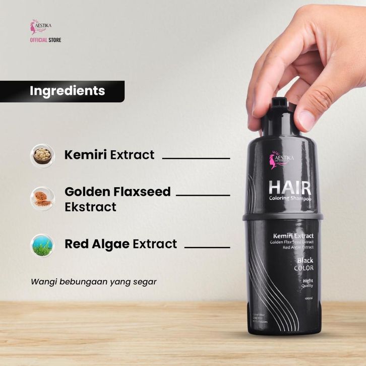 shampo uban Aestika Shampo Penghitam Rambut Uban Black Hair Coloring Shampoo, Menghitamkan Sekali Keramas BPOM