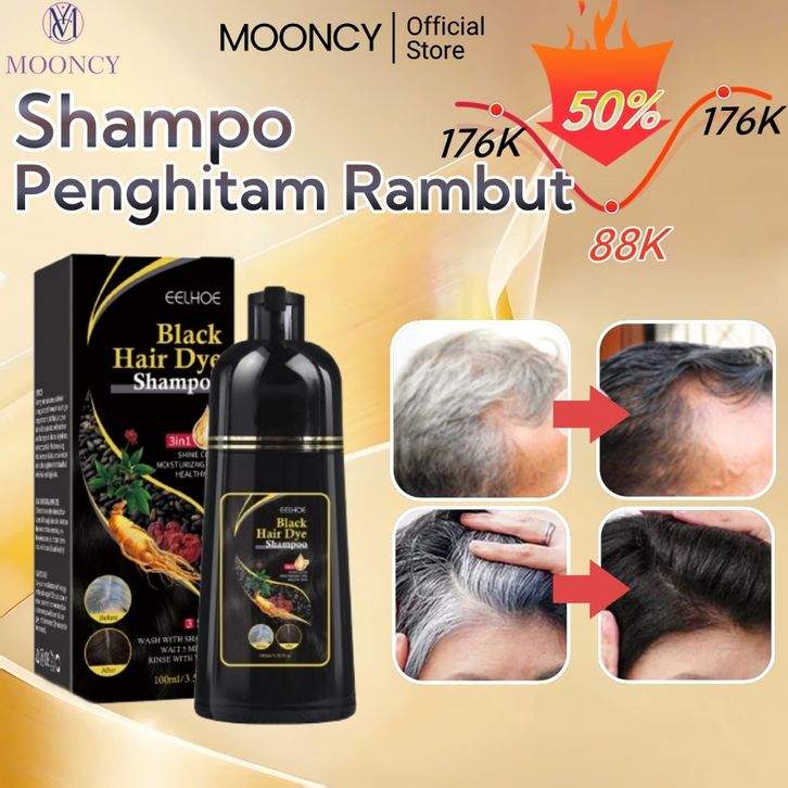 shampo uban Mooncy Shampoo Penghitam Rambut Uban Permanen Pewarna Rambut Shampoo Sampo Penghilang Uban Hair Coloring Sh