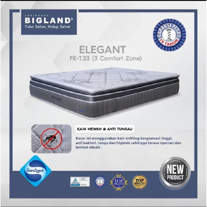 Bigland Kasur Springbed Elegant (FOAM ENCASED) - Kasur saja/SET - FREE BANTAL