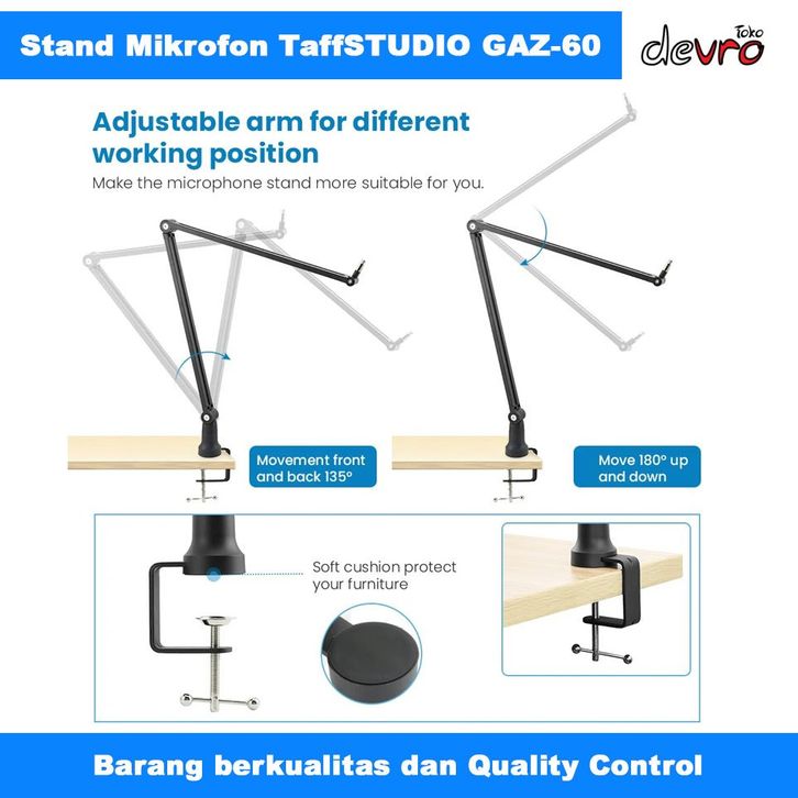 Stand Microphone - Arm Stand Mikrofon Boom Arm LazyP00D Aluminium - TaffSTUDIO GAZ-60