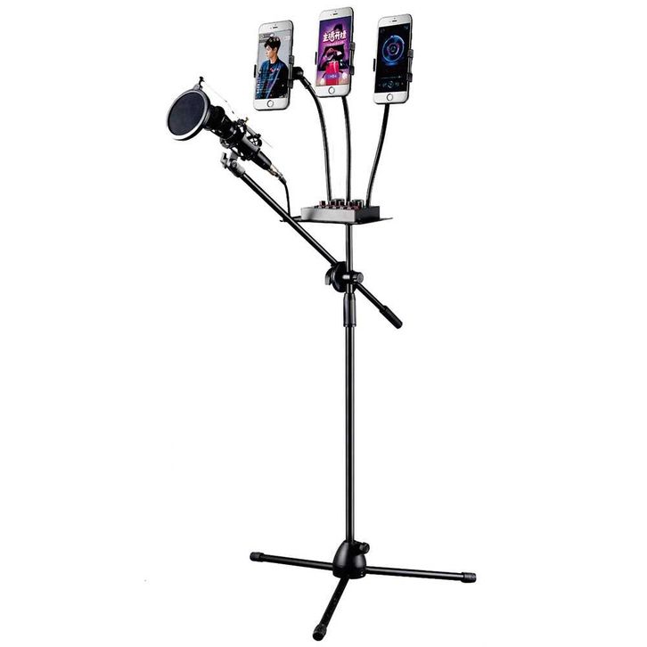 TaffSTUDIO Microphone Standing Holder TriP00D 3xSmartphone Holder - NB-04P - Black
