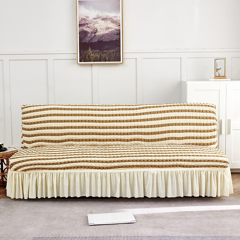 Utama Jakarta Baru - Cover Sofa Bed Polos Stripe Elastic /Cover Bed With Skirt Stretch Rumbai