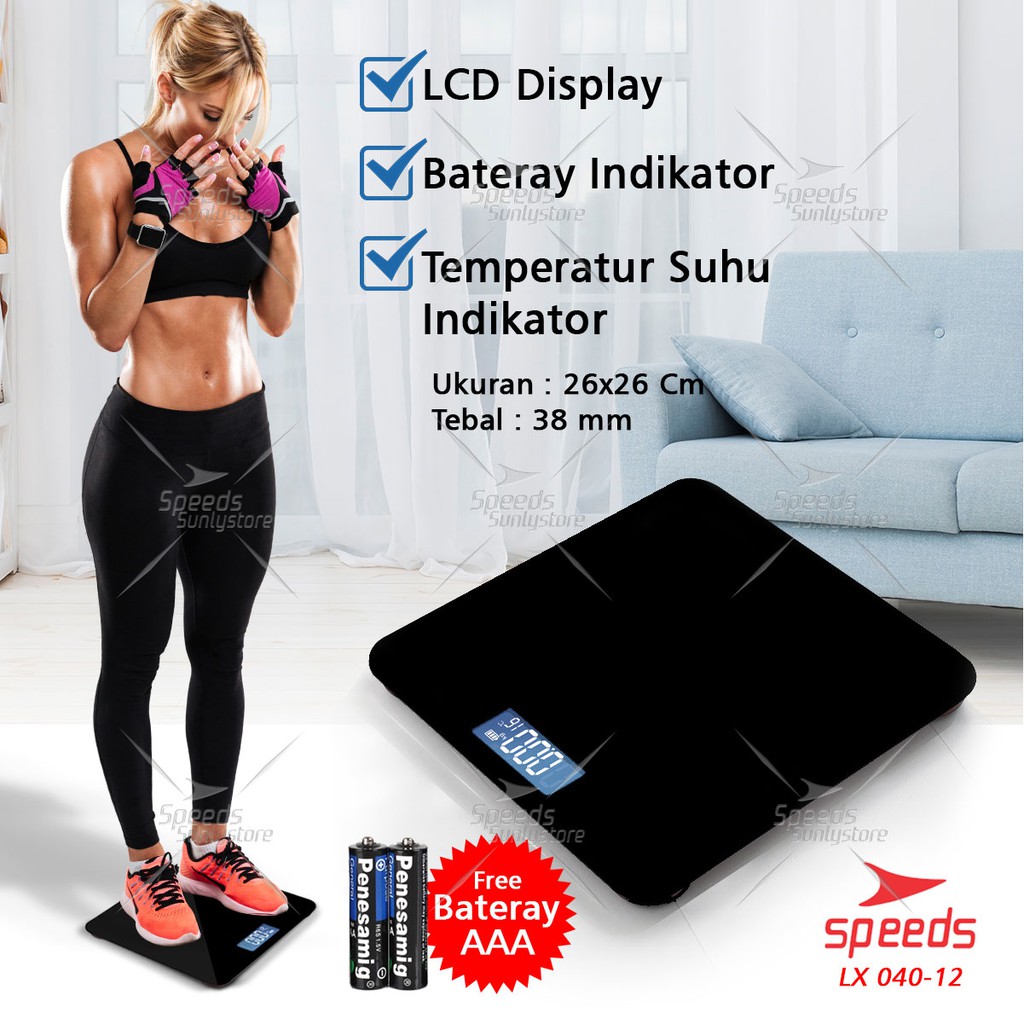 SPEEDS Timbangan Badan Digital 180kg Timbangan Kaca Mini Max Original 040-12